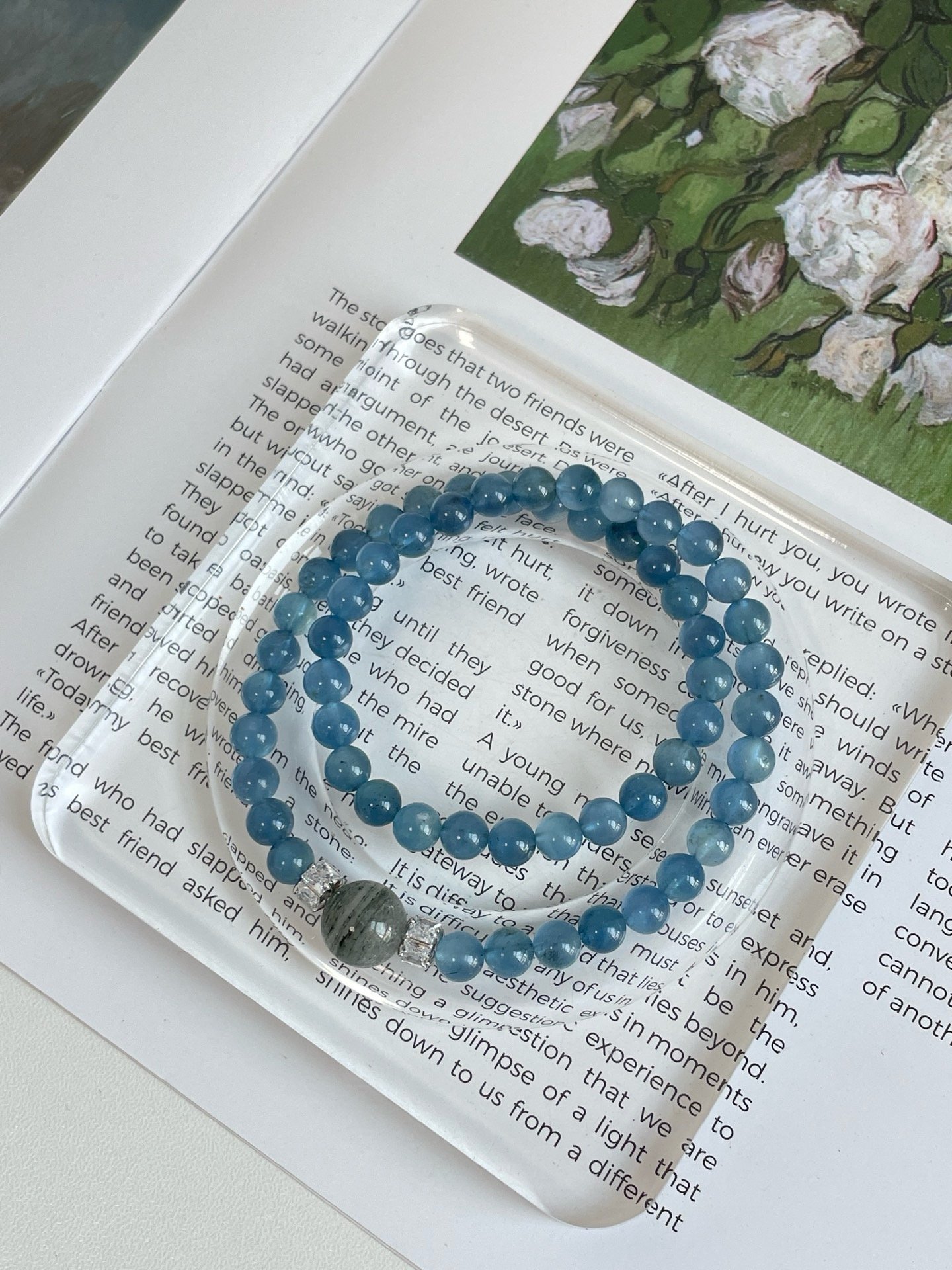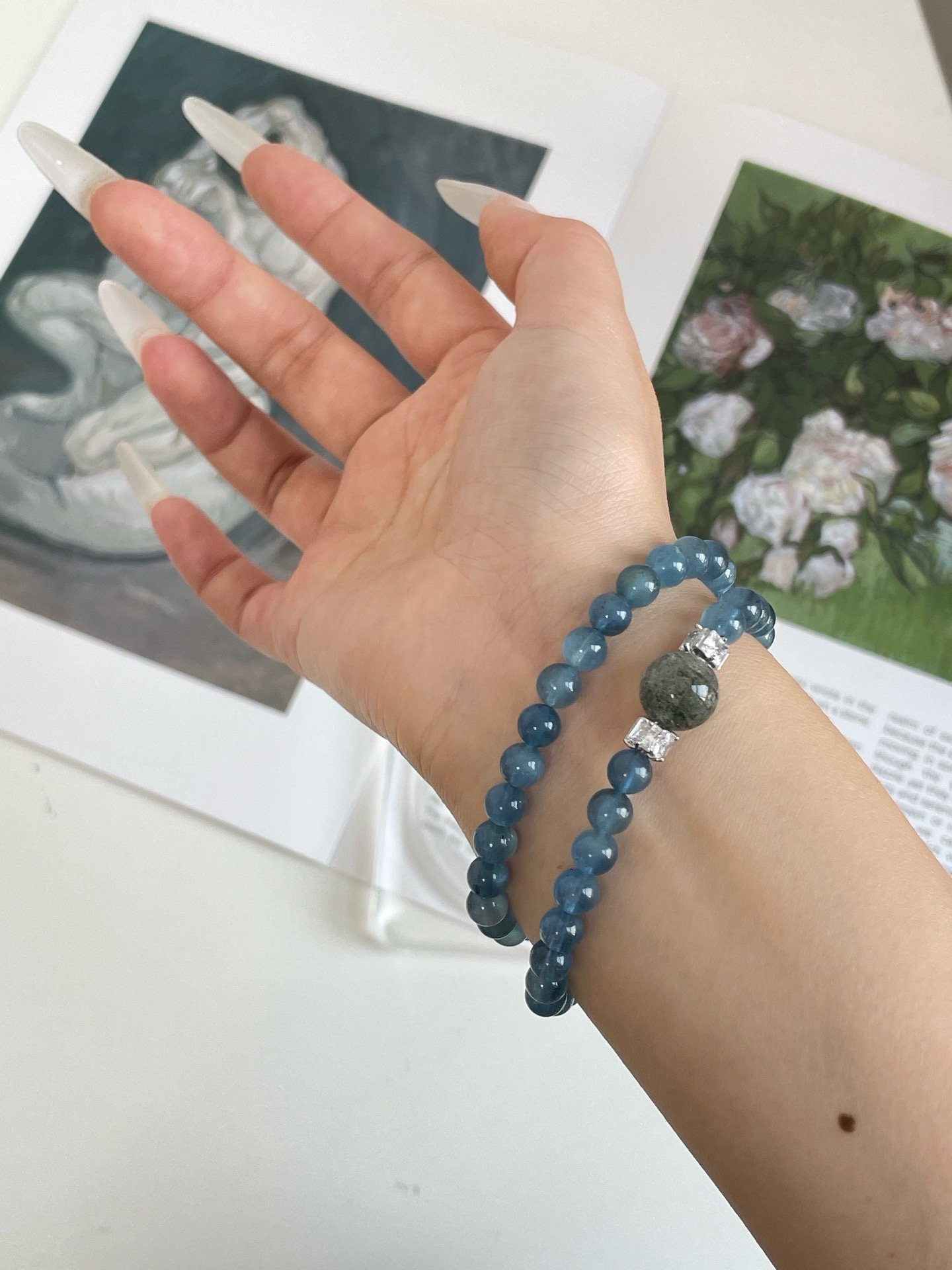 Mystic Harmony – Aquamarine & Green Phantom Crystal Bracelet.6mm-10mm